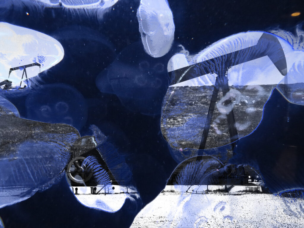This piece embodies the feeling of loss as a dark aura of pain and suffering pushes down on a grieving man. The grieving man exudes light around him, and the gold stripes throughout his body represent Kintsugi, or golden joinery, a Japanese art in which broken pottery is repaired using lacquer dusted with powdered gold.